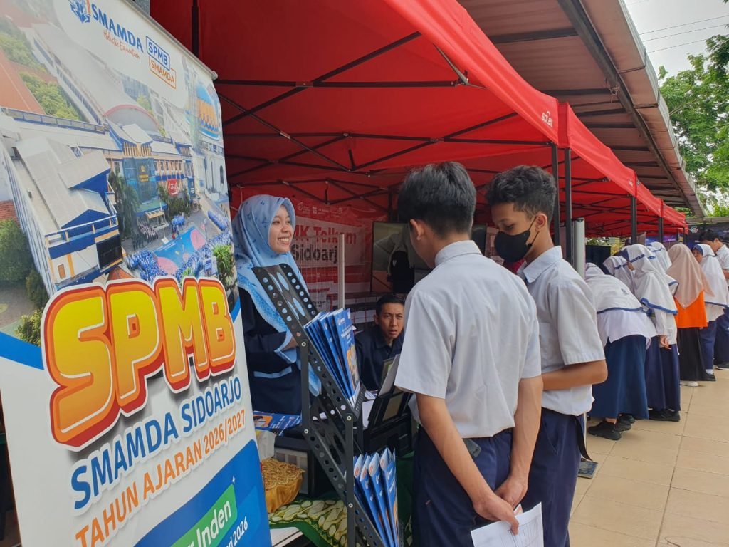 smpmusasi.sch.id-SMP Muhammadiyah 1 Sidoarjo (SMP Musasi) mengundang sejumlah 6 sekolah lanjutan SMA & SMK pada Senin (27/10/2025) untuk mempromosikan sekolah masing-masing dalam giat Edu Fair. Sekolah yang hadir diantaranya adalah SMA Muhammadiyah 2 Sidoarjo, SMK Telkom Sidoarjo, SMA Muhammadiyah 3 Tulangan, SMK Muhammadiyah 1 Tulangan, SMA Muhammadiyah 1 Taman, dan SMK muhammadiyah 1 dan 2 Taman. Kegiatan ini diselenggarakan di lapangan Barat SMP Musasi.
